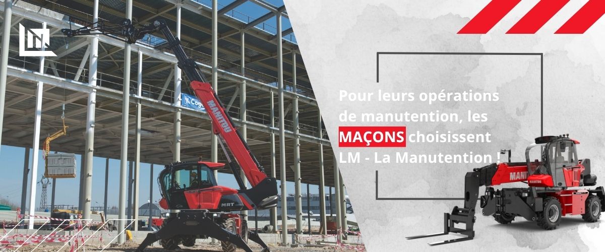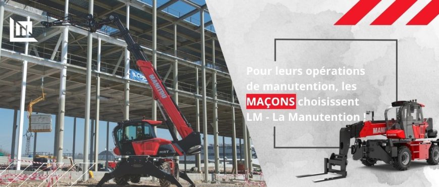 Chez LM – la Manutention, nous accompagnons les maçons avec des solutions de manutention adaptées aux exigences du gros œuvre et aux réalités du terrain.