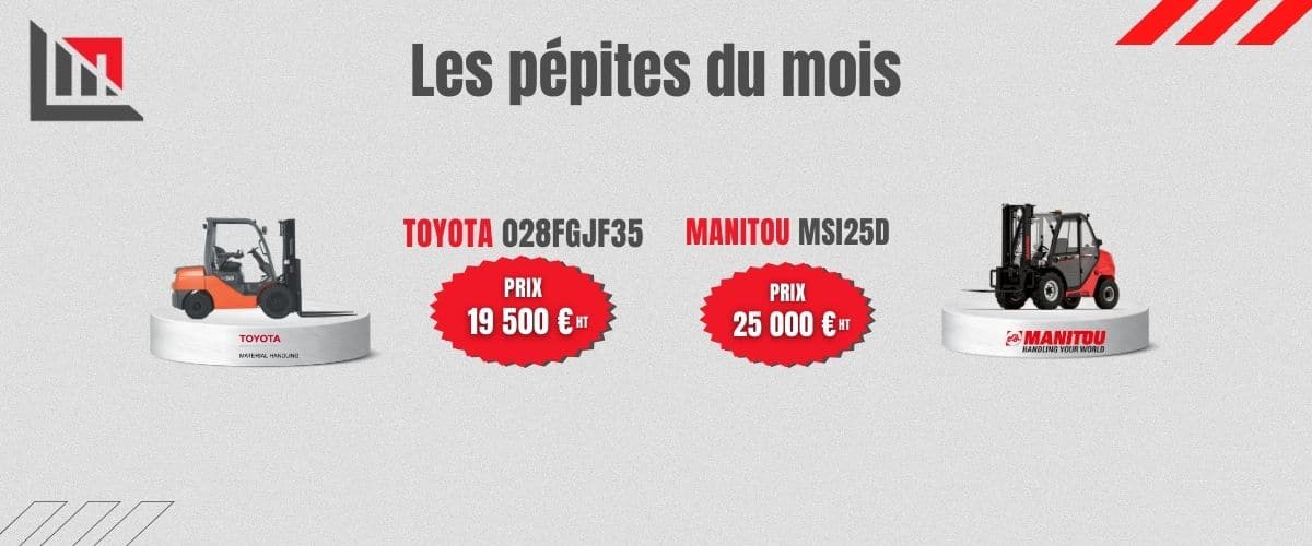 Ce mois-ci, nous vous présentons deux chariots élévateurs d’occasion triés sur le volet pour leur efficacité et leur fiabilité :